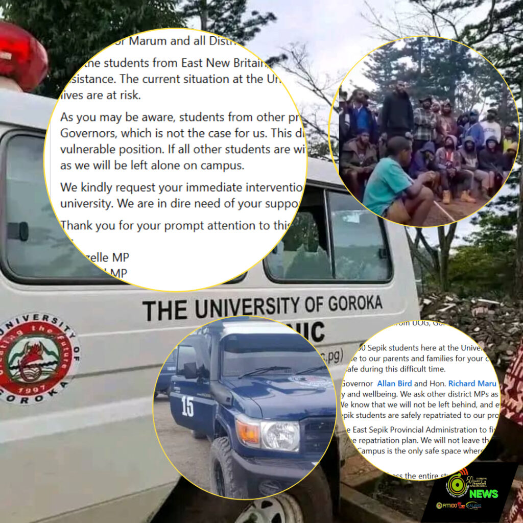 Higher Education Minister and Ungai Bena MP Kinoke Feo was at the Campus and addressed the students yesterday, however the student’s safety and welfare is paramount hence their appeal and call for immediate repatriation out of the UOG Campus.