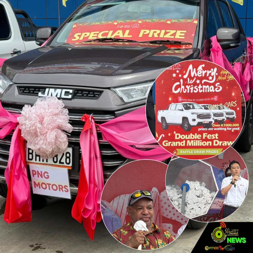 The promotion commenced earlier this month in all 8 Eliseo Branches in the Nation’s Capital, that saw the first draw today at Eliseo Rainbow Branch, with customer Gloria Michael who entered her shopping receipt at Eliseo Makana Branch, the lucky winner of the first JMC Vehicle valued at K150, 000.