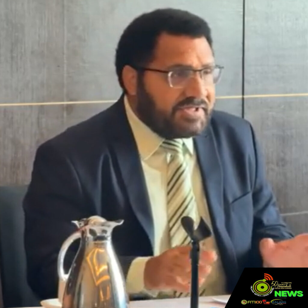 PICTURE CAPTION: New Police Minister John Pundari addressing the media at the Stanley Hotel.