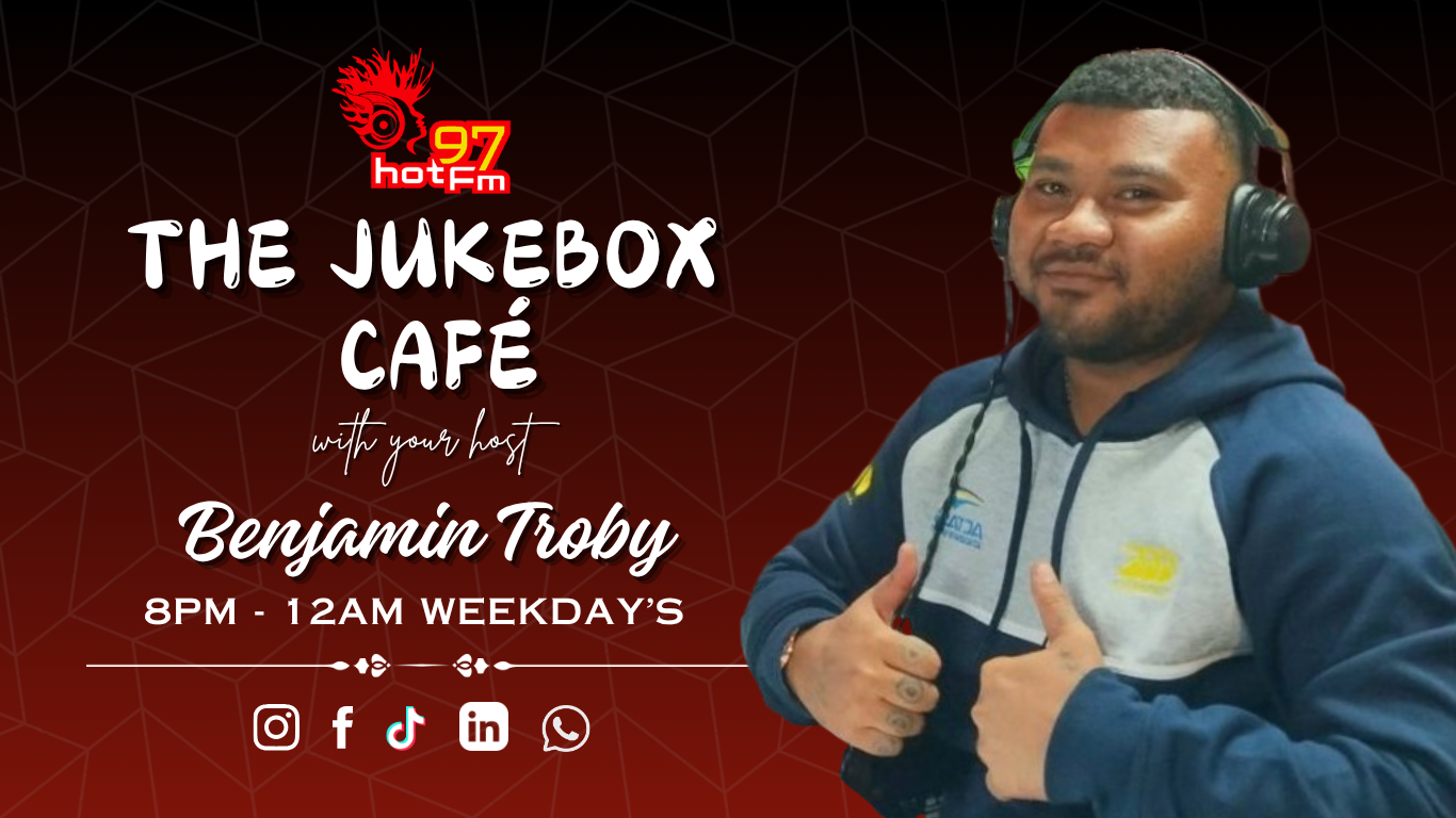 “The Jukebox Café” with Benjamin every weekdays, delivering a mix of throwback hits and party anthems. Dive into segments like “Food for Thought,” “Facts or Fiction,” “Ai Dua Happenings,” “Artist in Focus,” and “Guess the Song,” along with sports updates, movie trivia, and entertainment news. End your night with back-to-back music and a weird fact to amaze you.